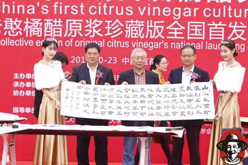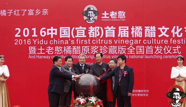 秋风送爽,桔醋飘香。今天上午, “桔子红了富乡亲——2016中国(宜都)首届橘醋文化节暨土老憨橘醋原浆珍藏版全国首发仪式”活动,在湖北宜都土老憨生态科技园隆重举行。意大利的世界首席醋酸菌专家保罗教授、中国社科院工业经济研究所的曹建海主任、中国医促会营养学专家姜铁梅博士、中国著名毛体书法家朱智能先生、武汉大学教授书法家张冰梅先生、书法家吴海友先生等出席了开幕式。